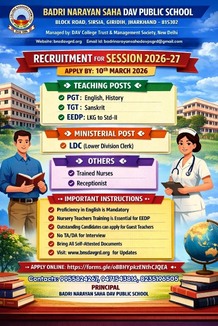 (FOR OFFICE QUERY)9431920055 E-mail : bnsdavgiridih@hotmail.com bnsdav_grd@rediffmail.com.
